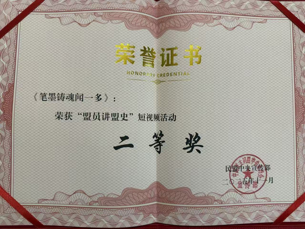 《笔墨铸魂闻一多》短视频由民盟天津工业大学委员会黄东卫、吴云监制,张荣恺编导,演绎了闻一多用生命书写爱国华章的历史。近年来,我校民盟组织在学校党委的指导与支持下积极开展各种形式的参政议政、社会服务工作,未来将继续加强自身建设,积极建言献策,更好地发挥统一战线的重要作用,为学校高质量发展和国家现代化建设贡献智慧与力量。